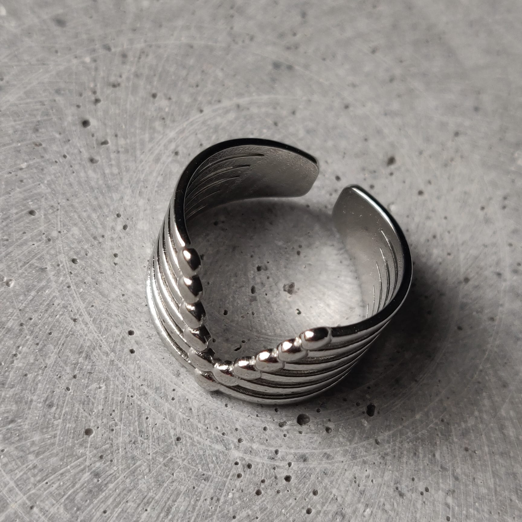 Chunky layered cut out V open cuff ring, depth 12mm at widest part.