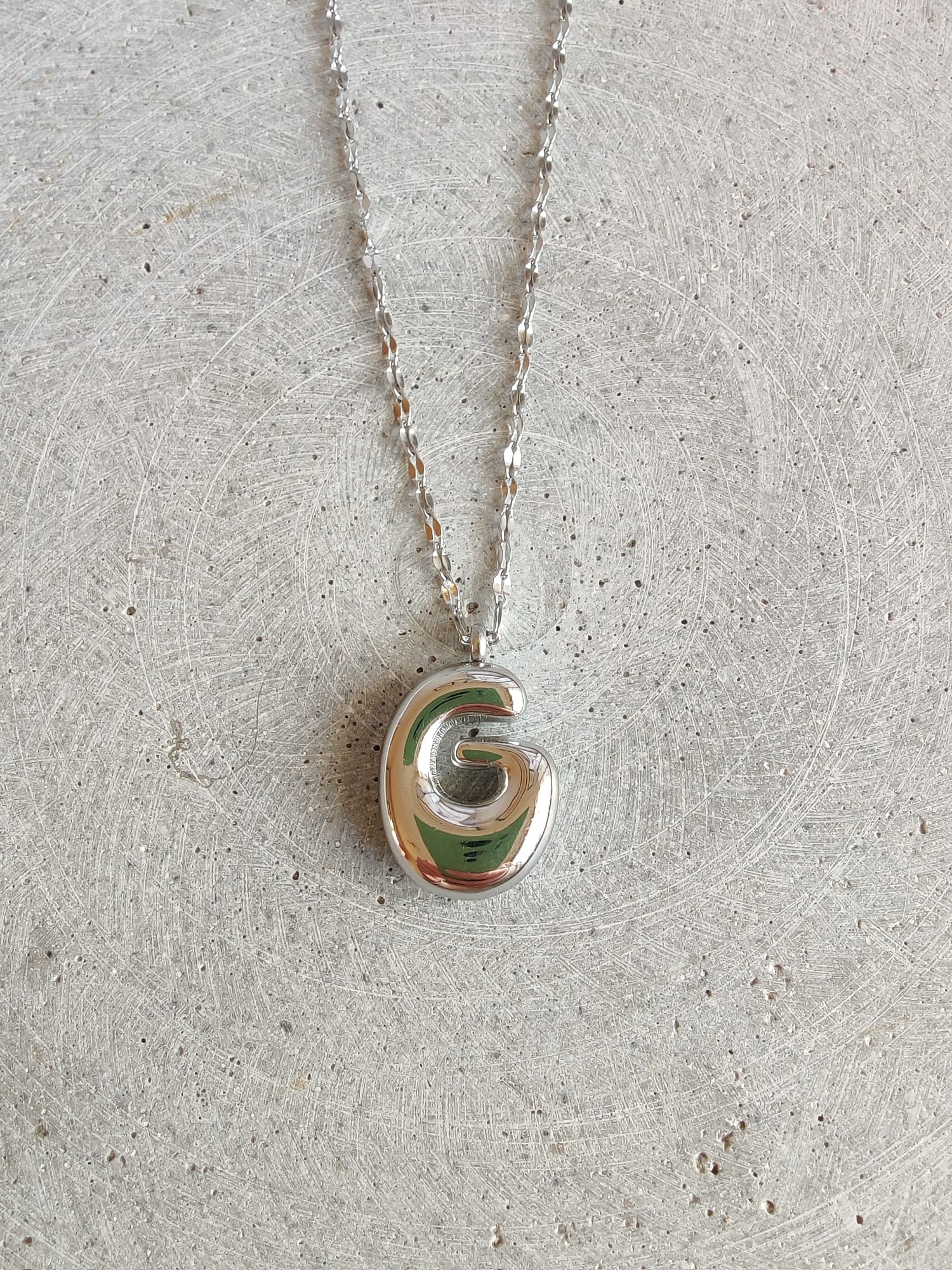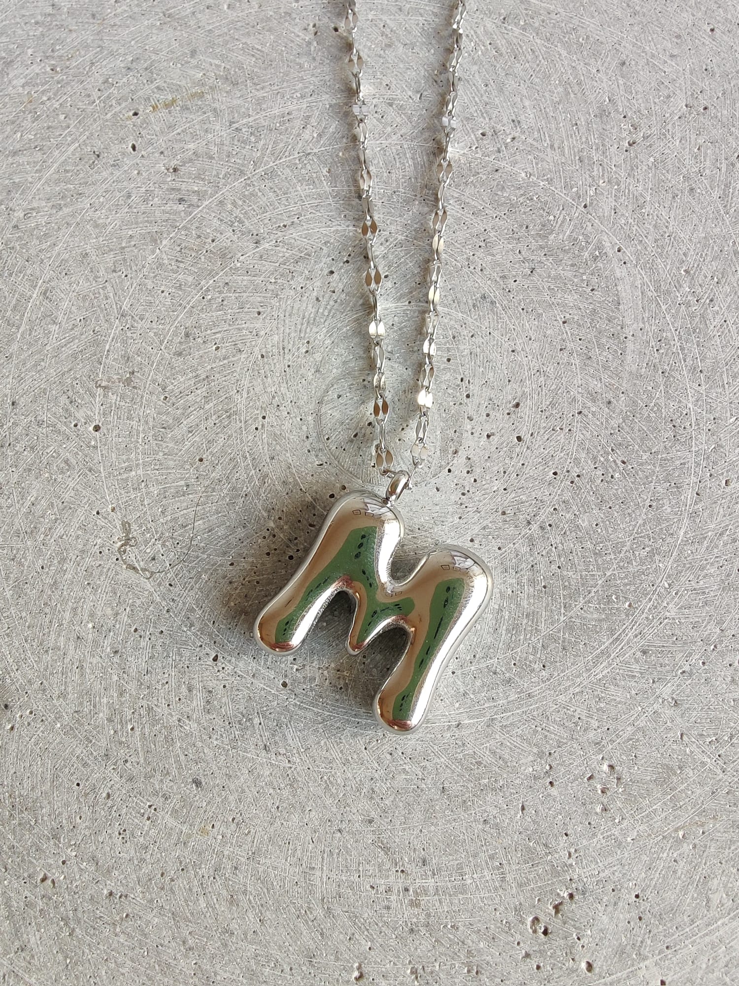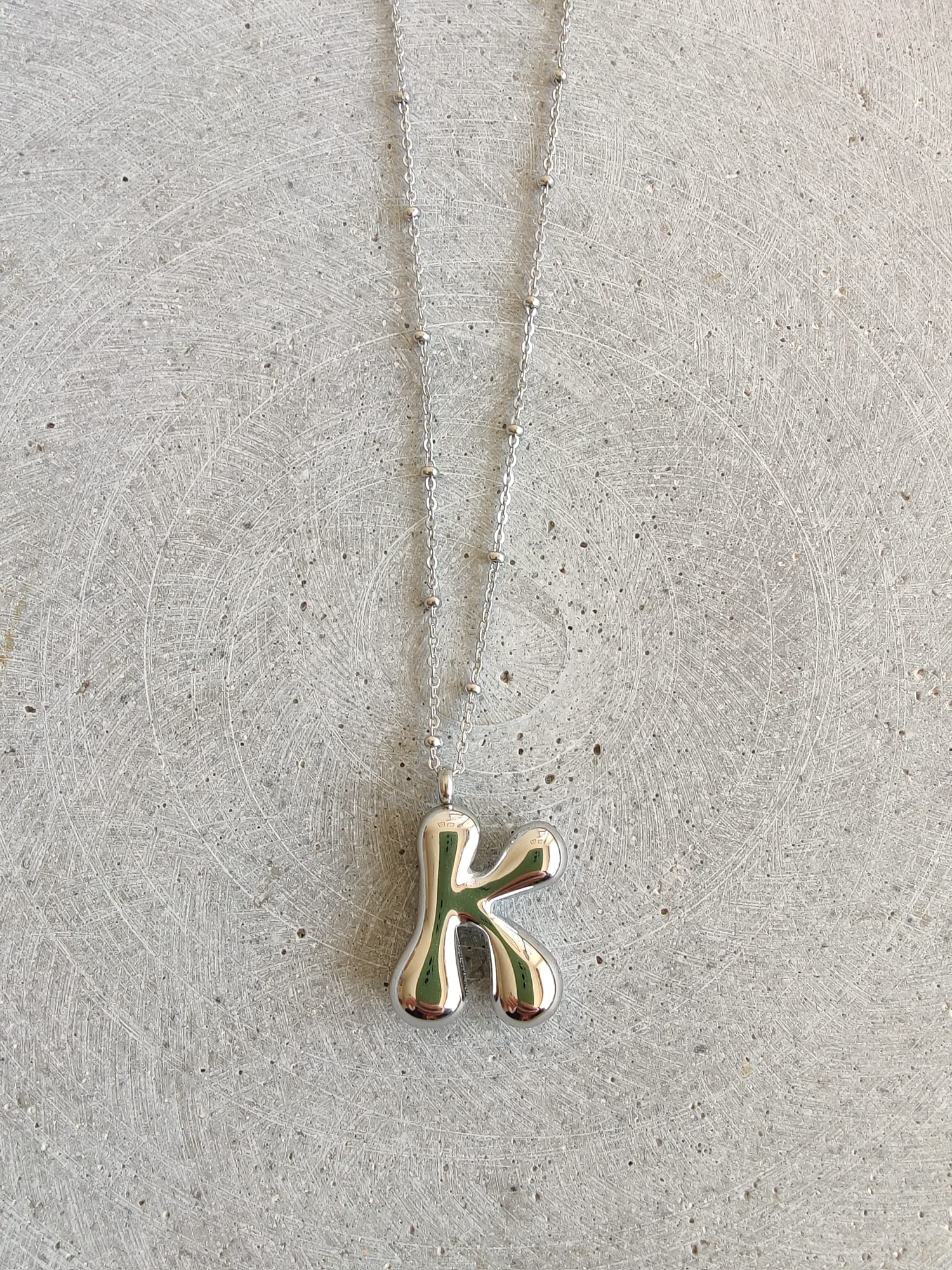 Silver ION plated stainless steel hypoallergenic bubble design inital letter necklace.