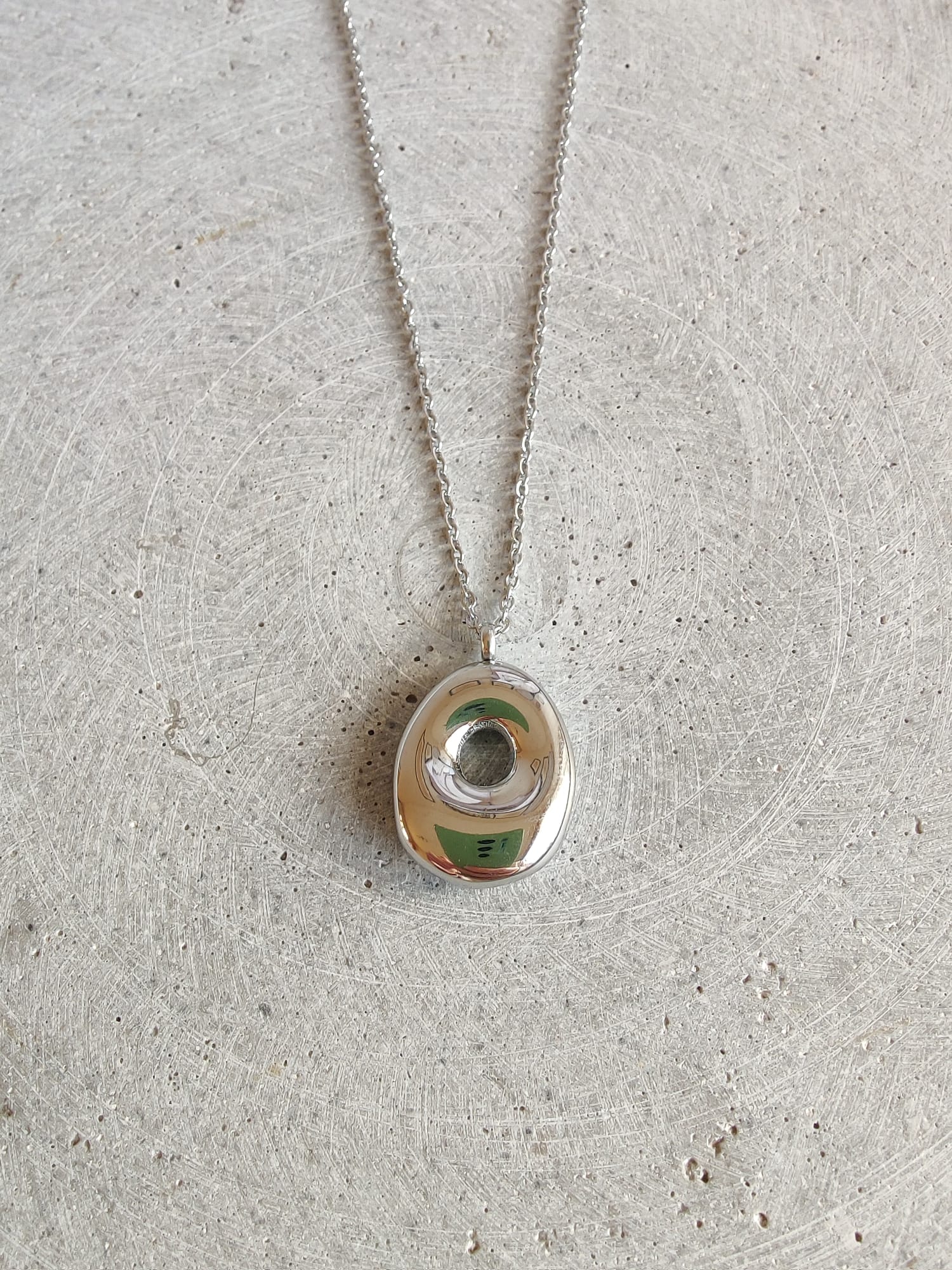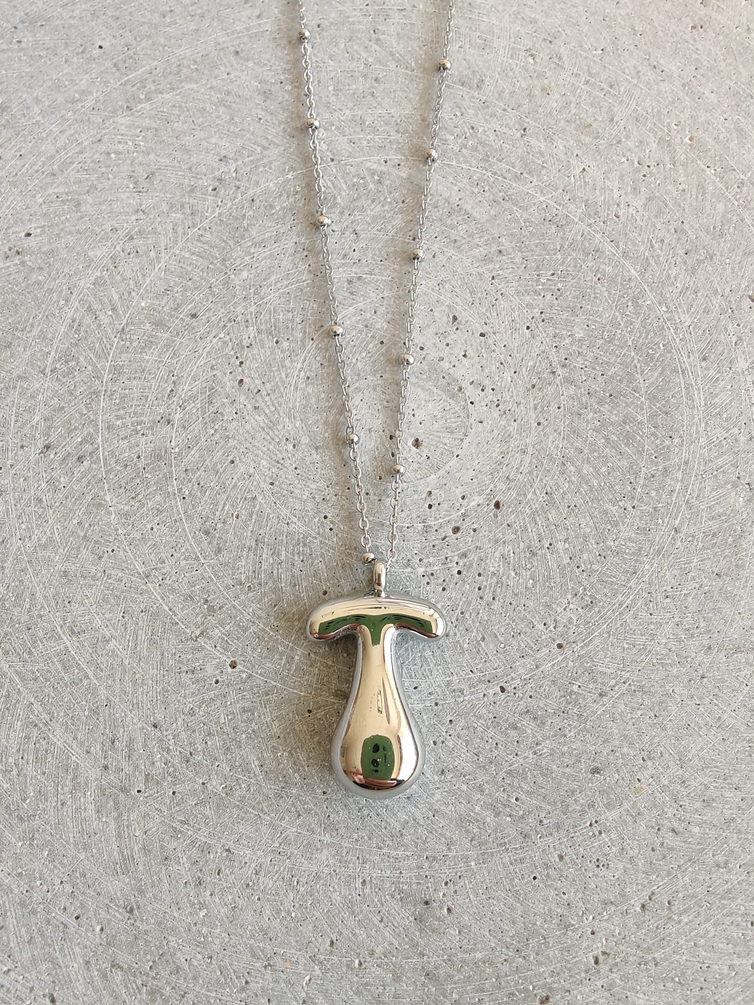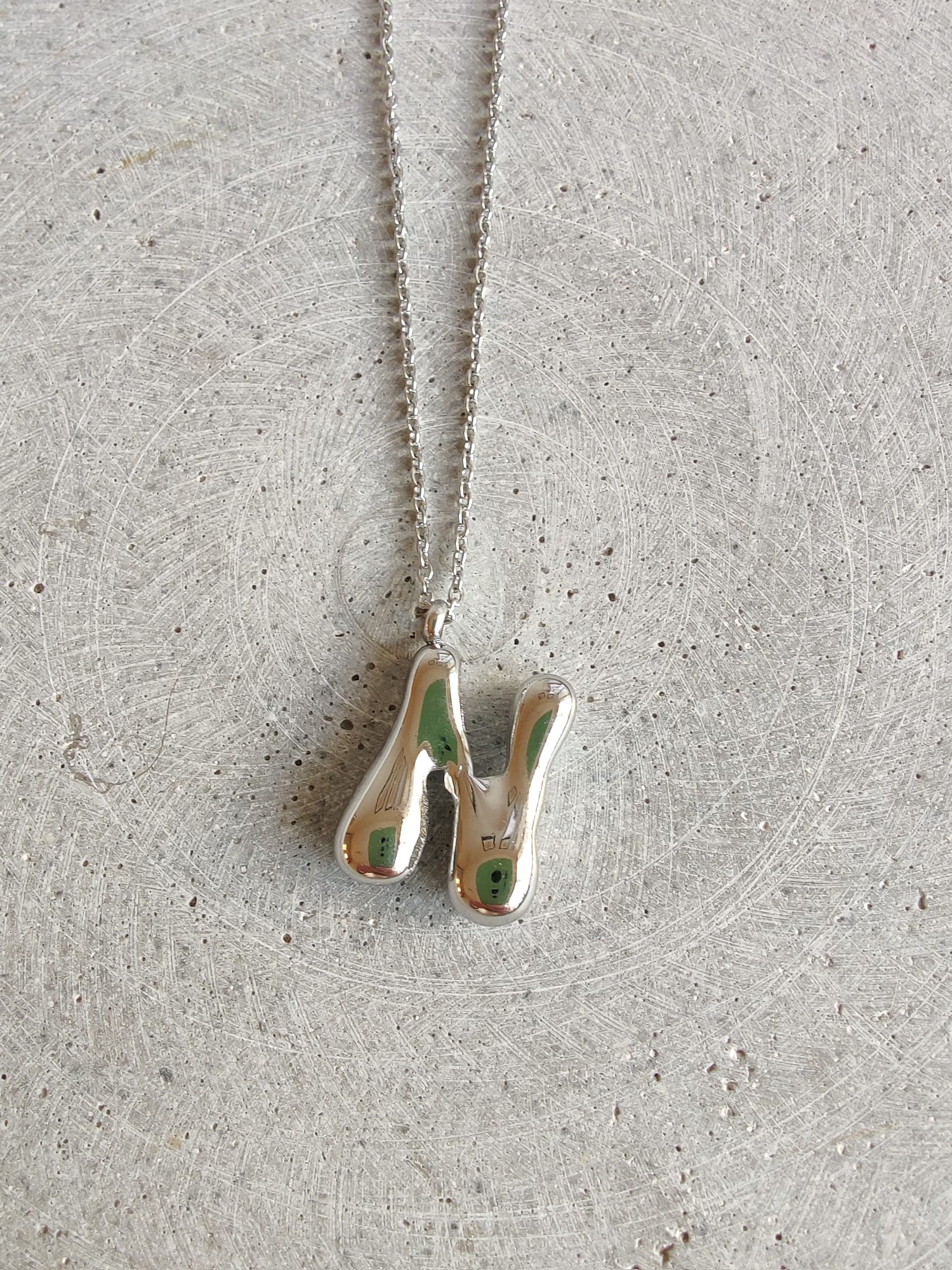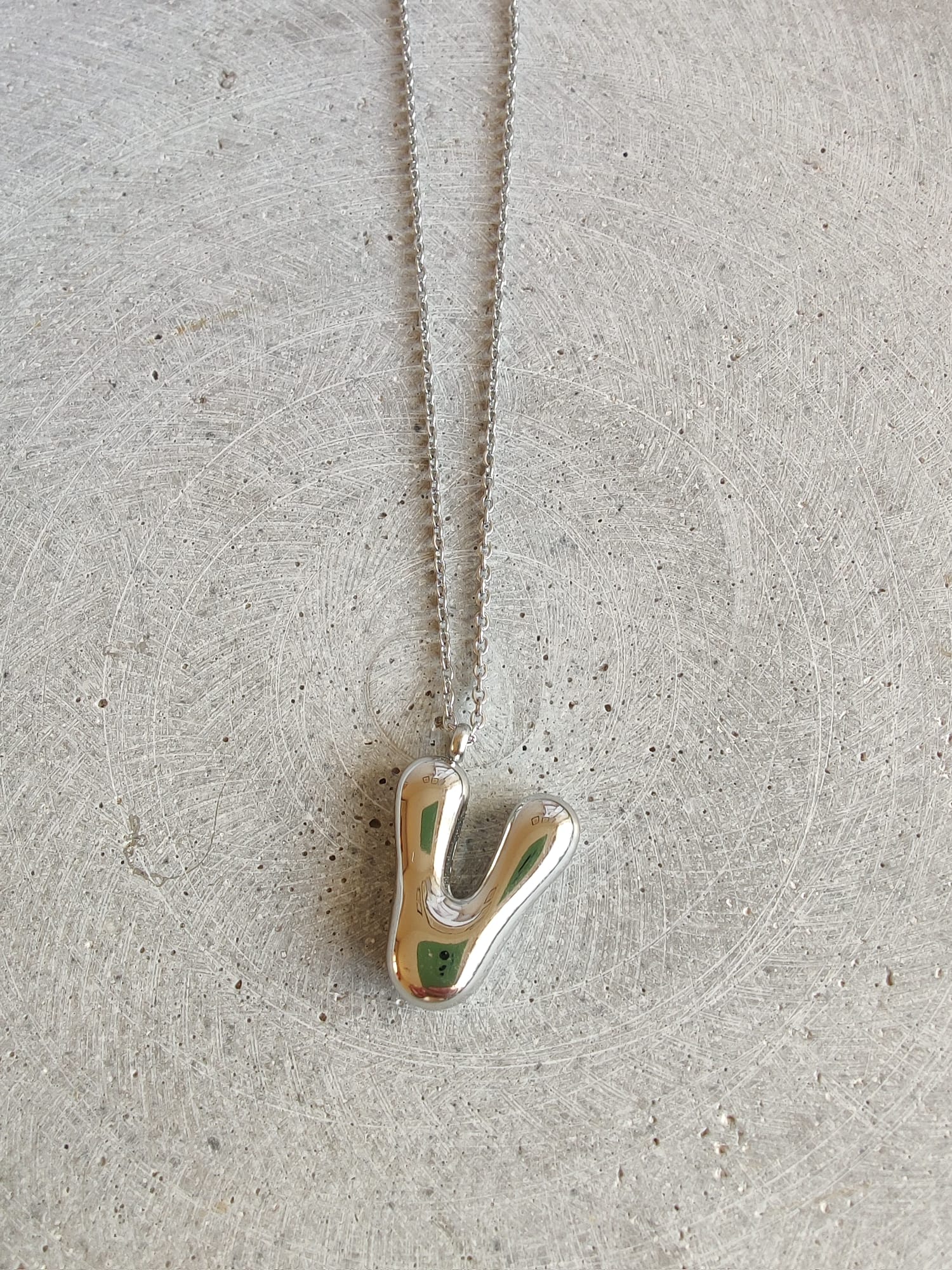 Silver ION plated stainless steel hypoallergenic bubble design inital letter necklace.