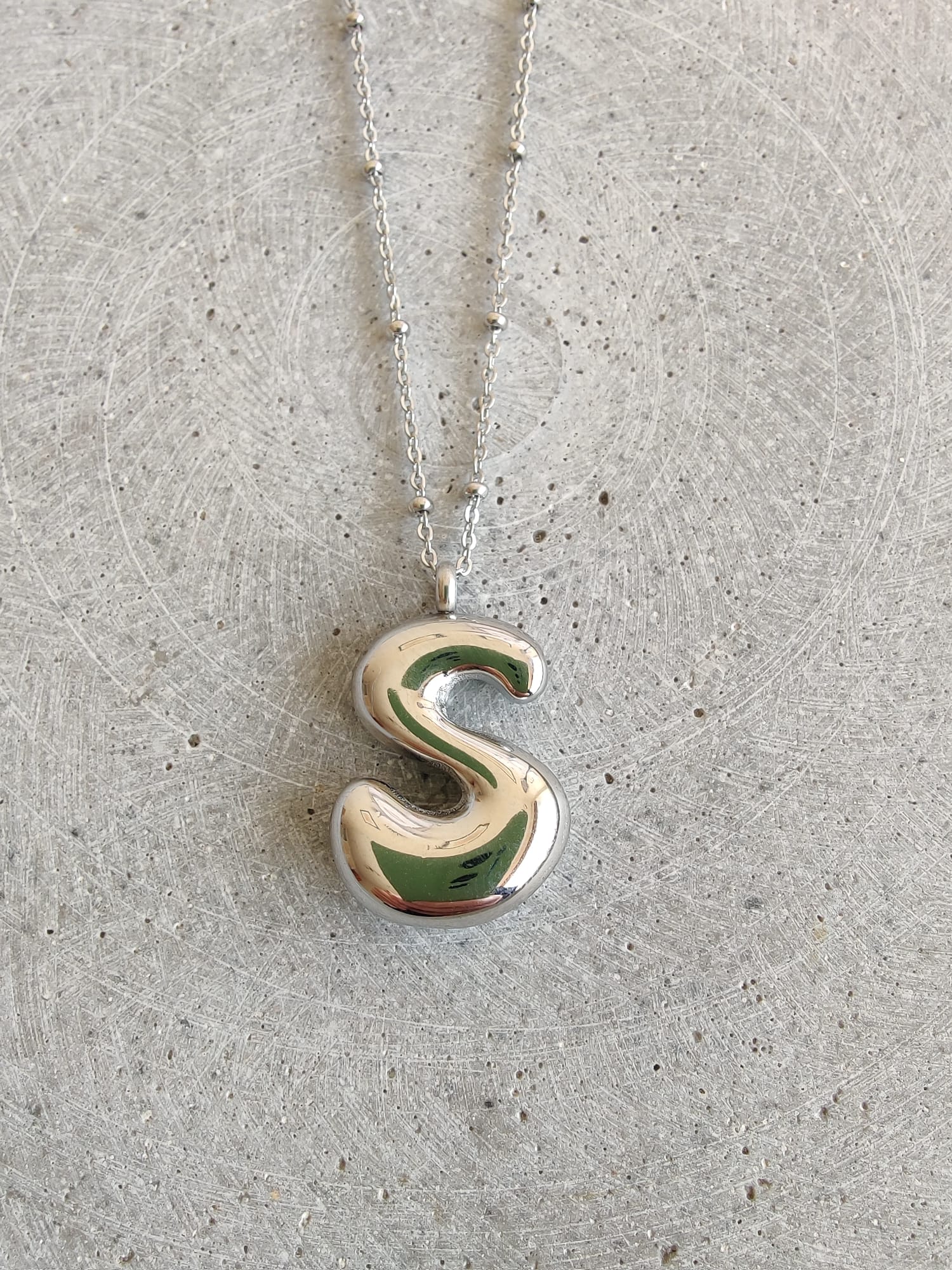Silver Bubble Initial Letter Stainless Steel Necklace